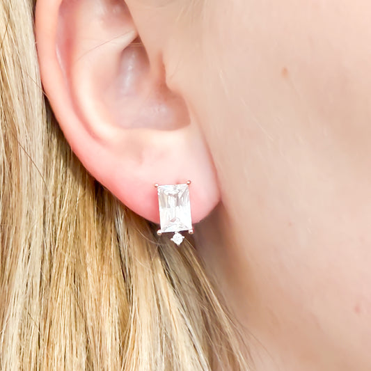 Cubic Zirconia Rose Gold Stud Dangle Earrings