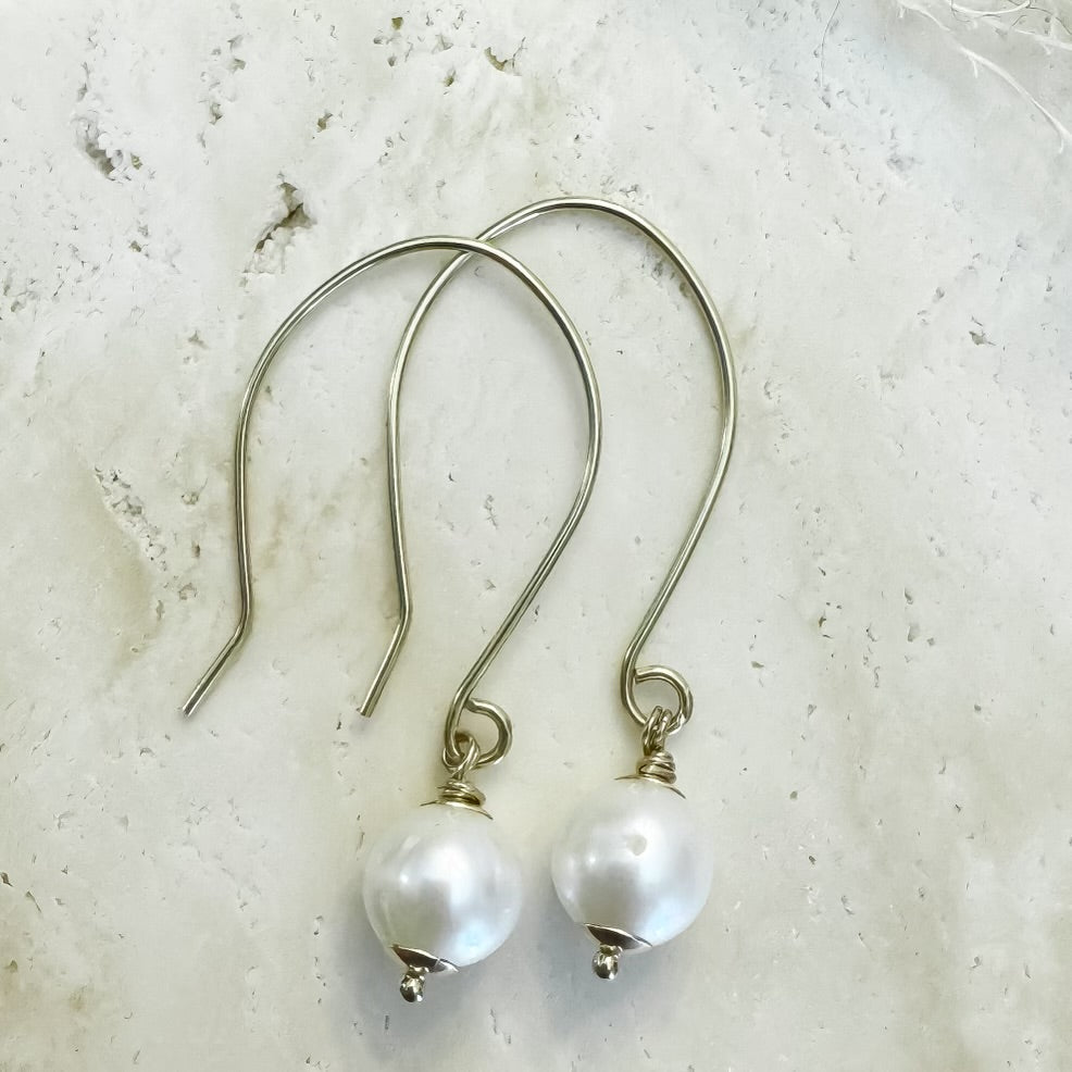 Freshwater Pearl Gold Filled Handmade Wire Dangle Earrings
