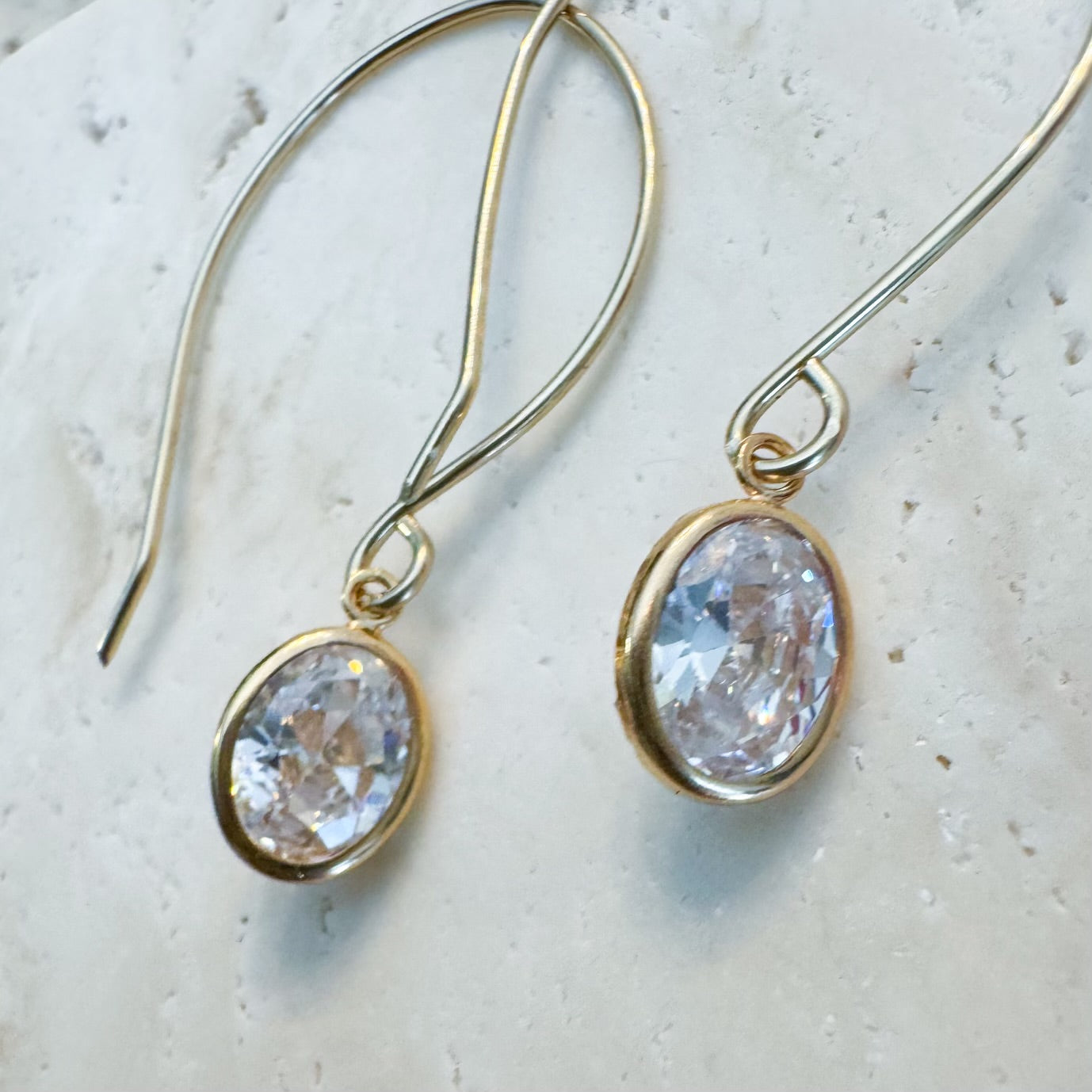 Cubic zirconia's measure approximately 9mm x 7mm and are hung on handmade gold filled wires.